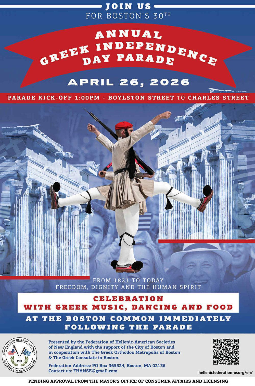 The 30th Annual Greek Independence Day Parade of Boston will return to Back Bay on Sunday, April 26, 2026, welcoming honorable Hellenic groups and thousands of spectators along Boylston Street in commemoration of Greece’s independence from Ottoman Rule, which began on March 25, 1821.